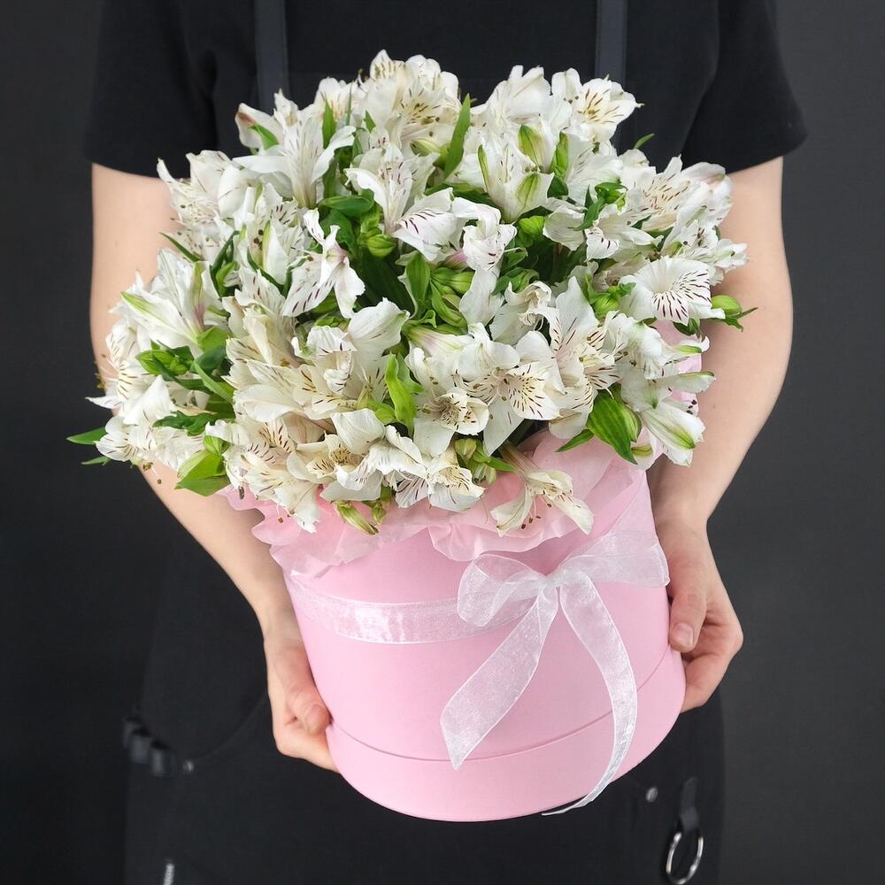 Альстромерия – 21 шт.Шляпная коробка – 1 шт.подкормка для срезанных цветов – 1 шт.инструкция по уходу за цветами – 1 шт.
