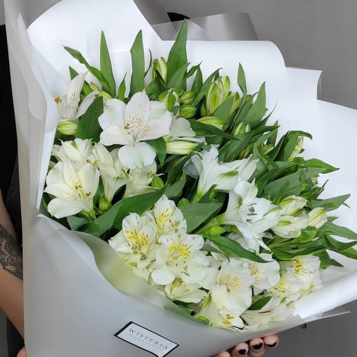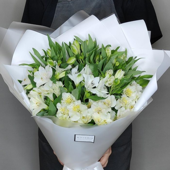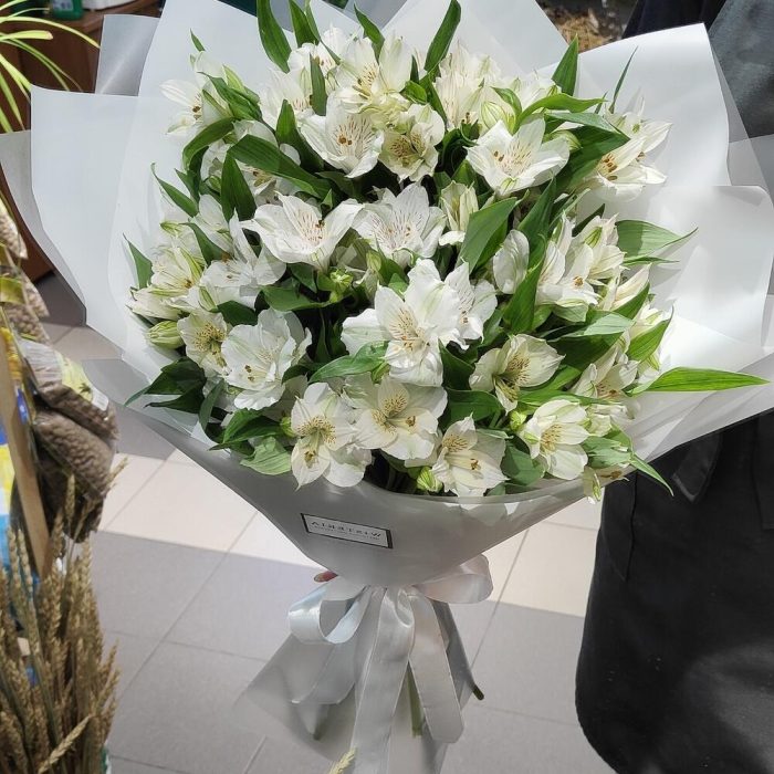 Букет из 15 белоснежных альстромерий “Жемчужина”