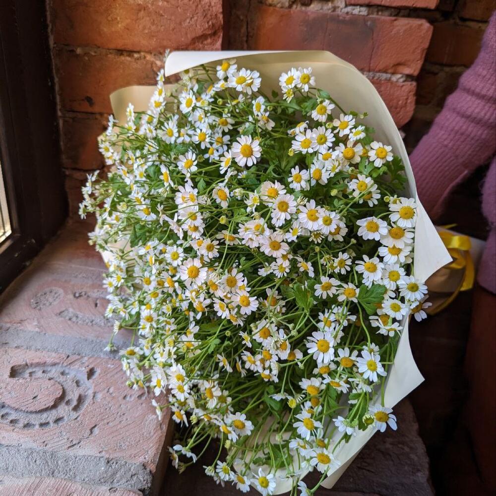 Лента атласная – 2 шт.Матрикария – 23 шт.Упаковка дизайнерская – 2 шт.