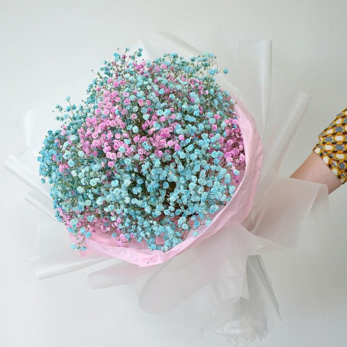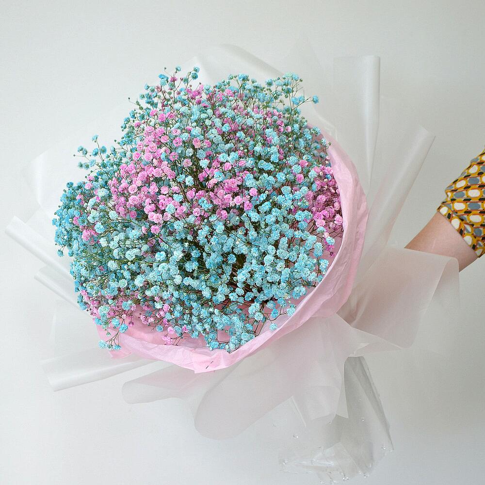 Букет гипсофилы цветной в оригинальной упаковке