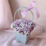 “Сиреневый туман” – композиция из гипсофилы в шляпной коробке