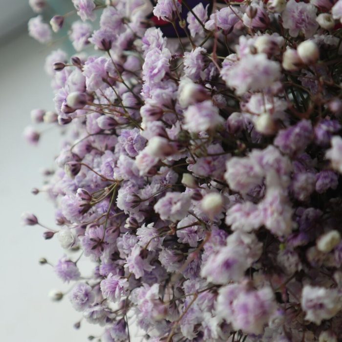 “Сиреневый туман” – композиция из гипсофилы в шляпной коробке