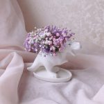 Керамическое кашпо – 1 шт.Губка флористическая – 1 шт.гипсофила радужная – 3 шт.