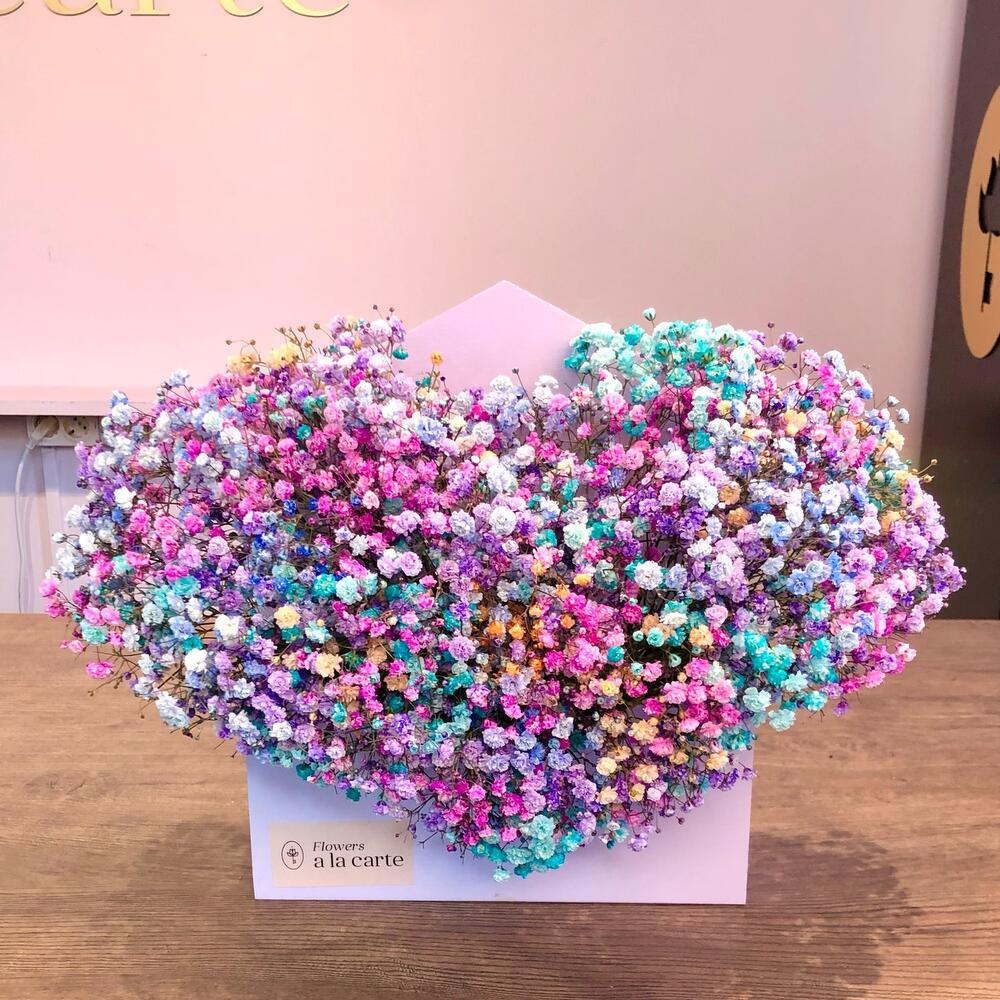 «Лавандовое созвездие» Букет из розы, гвоздики, статица и хлопка