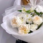 пионовидные розы – 3 шт.Хризантема кустовая – 1 шт.Гвоздика – 1 шт.Альстромерия – 1 шт.Сухоцветы – 2 шт.Фисташка – 3 шт.Упаковка дизайнерская – 1 шт.