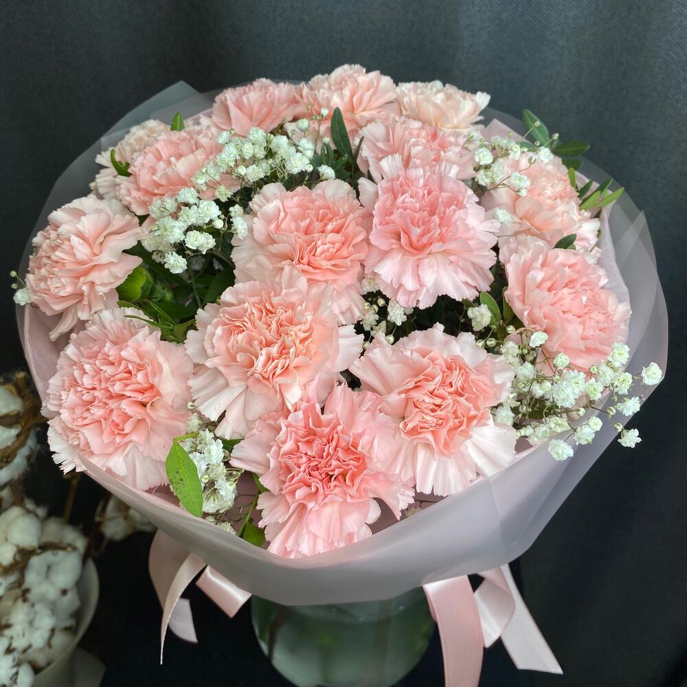 Букет диантусов с гипсофилой
