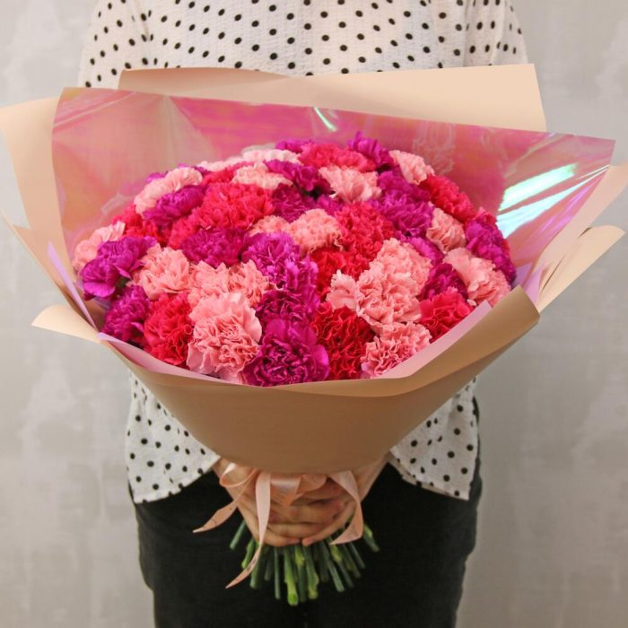 Букет из 51 диантуса (гвоздики) микс в стильной упаковке