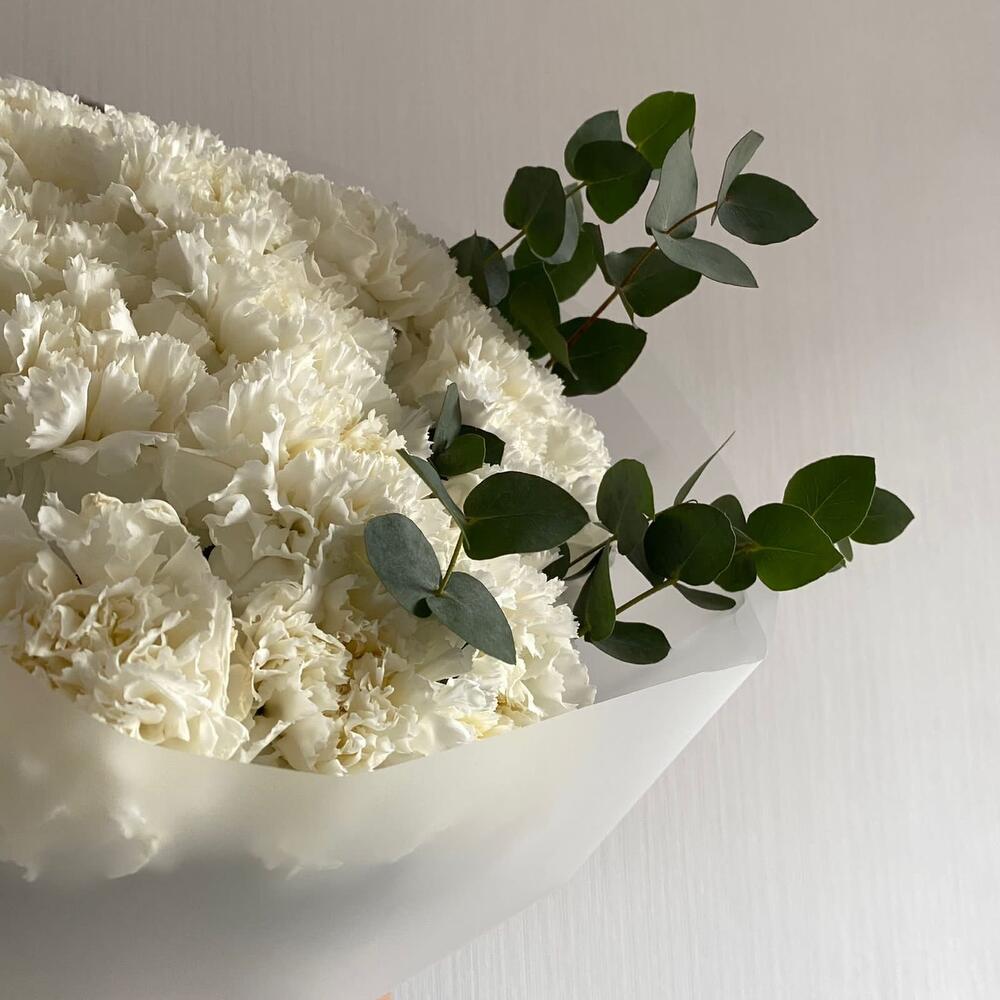 Букет из белых гвоздик и эвкалипт