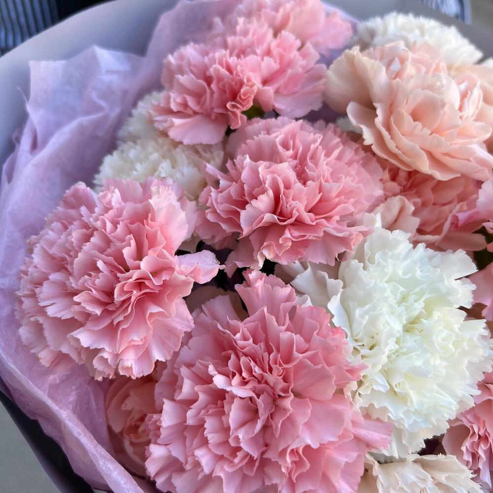Лента атласная – 2 шт.Диантус – 21 шт.Упаковка дизайнерская – 3 шт.