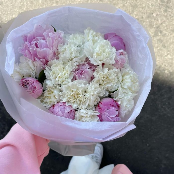 Пион – 7 шт.Диантус – 15 шт.Упаковка дизайнерская – 2 шт.