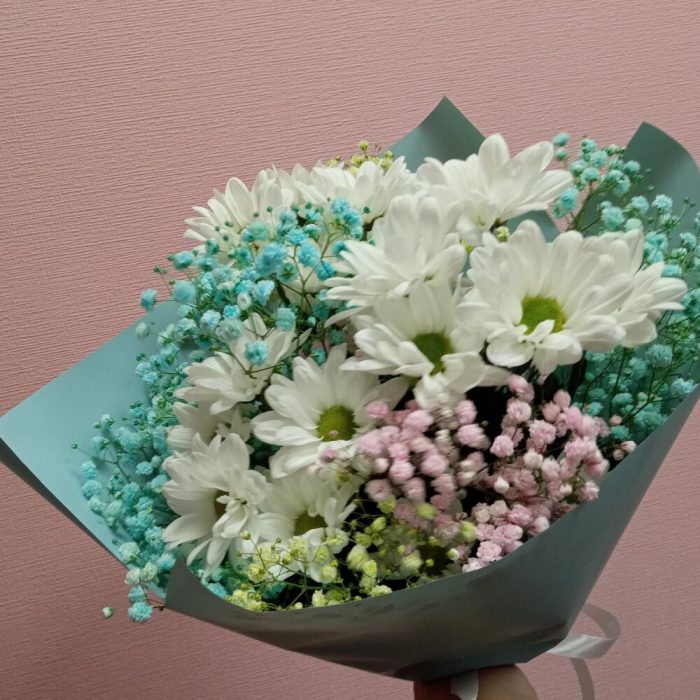 Букет Муза с хризантемой и гипсофилой