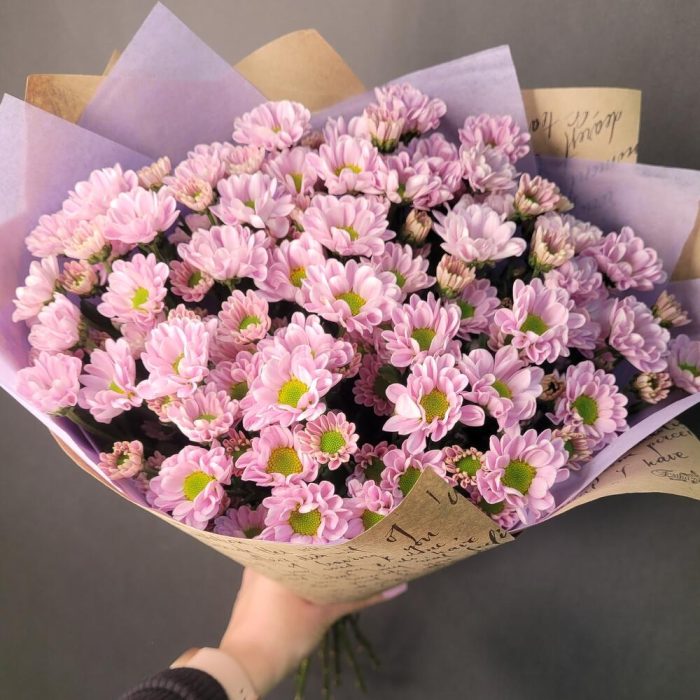 Нежные, сиреневые, цветочки Сантини поднимут настроение с первого взгляда, букет можно подарить на любой праздник или просто как знак внимания