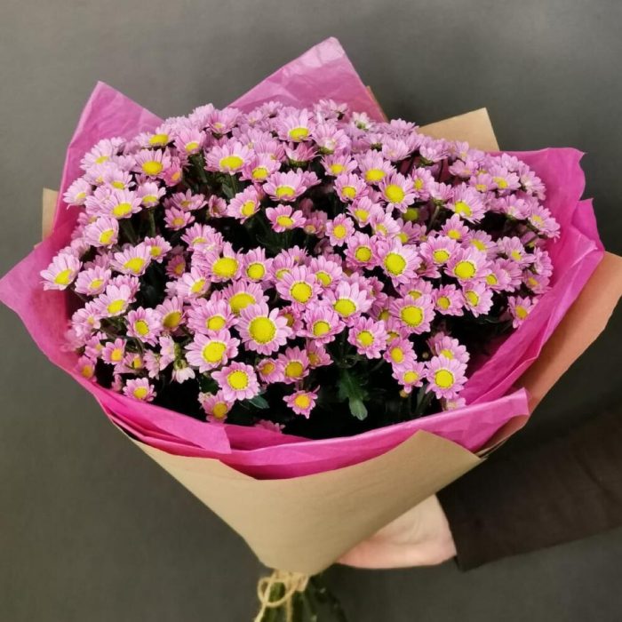 хризантема кустовая мадиба пинк – 11 шт.Упаковка дизайнерская – 5 шт.джут натуральный – 1 шт.