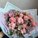 Букет с кустовыми розами и хлопком