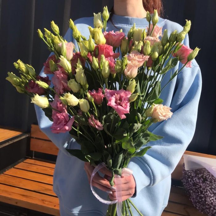 Лента атласная – 1 шт.Лизиантус розовый – 9 шт.комплимент от polyanka – 1 шт.