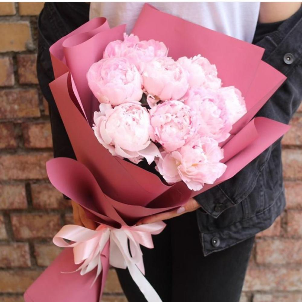 Ароматный букет из 9 пионов в дизайнерской упаковке
