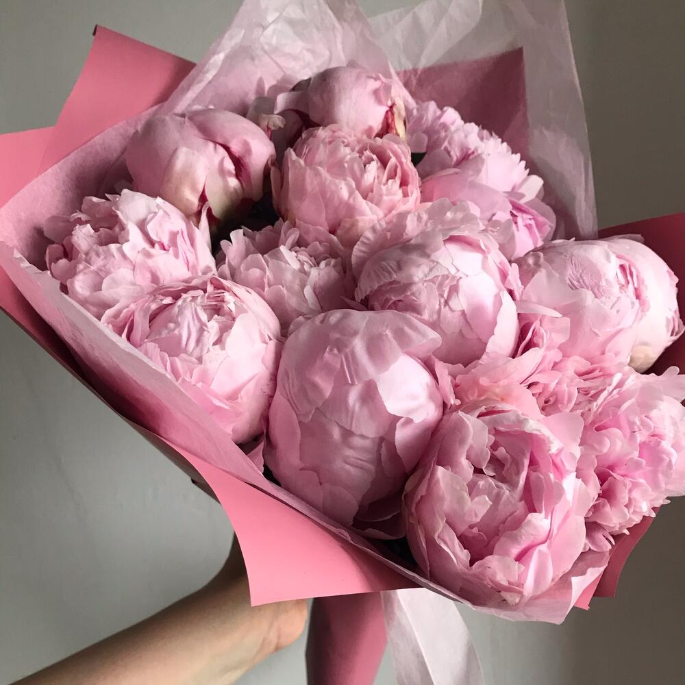 Лента – 2 шт.Упаковка дизайнерская – 3 шт.Пион розовый – 15 шт.Средство для продления жизни цветов – 1 шт.Инструкция по уходу – 1 шт.
