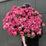 Букет состоит из 35 веток кустовой розы сорта Жизель . Количество роз(бутонов) в букете может достигать 241 штуки .