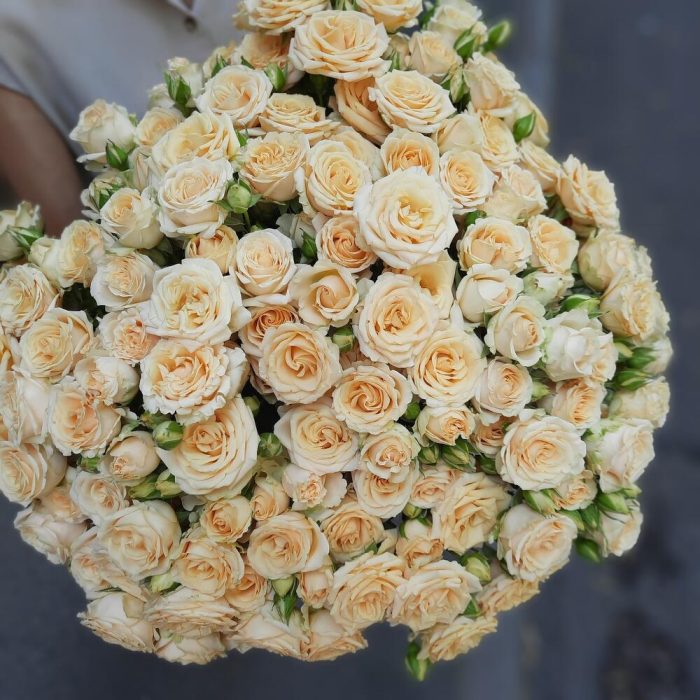роза кустовая кремовая 60 см – 25 шт.упаковка дизайнерская в подарок – 2 шт.Лента органза – 1 шт.