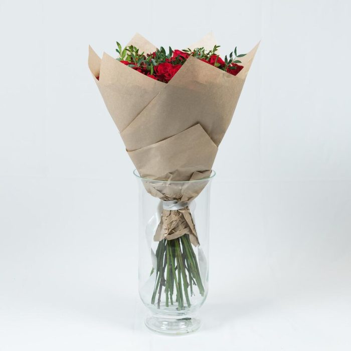 25 роз explorer PREMIUM 50 см в крафте с зеленью