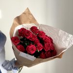 Красная кустовая роза – 5 шт.Крафт упаковка – 1 шт.