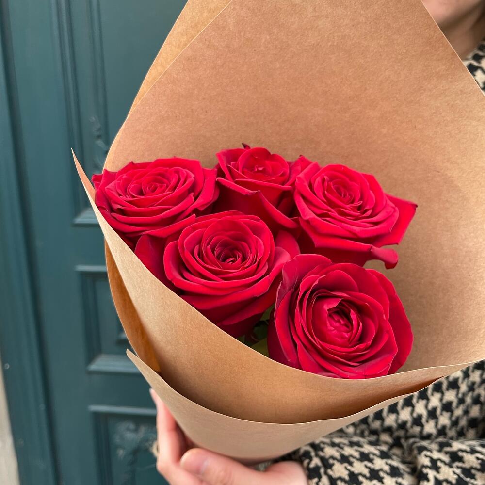 Крафт упаковка – 1 шт.Роза красная 50 см – 5 шт.