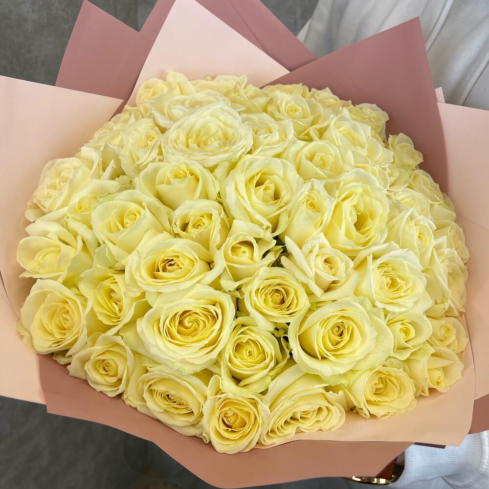 Роза белая аваланж – 51 шт.
