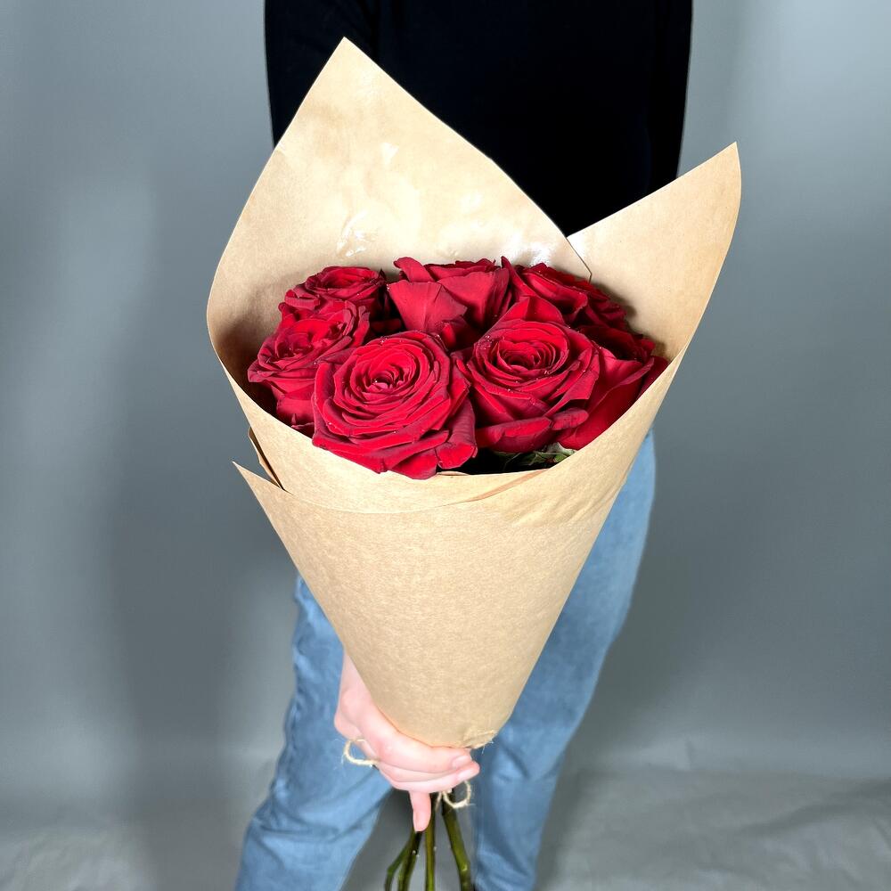 Крафт упаковка – 1 шт.Красная роза россия – 7 шт.
