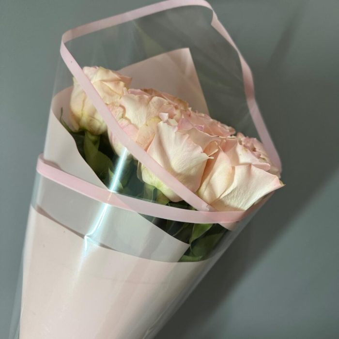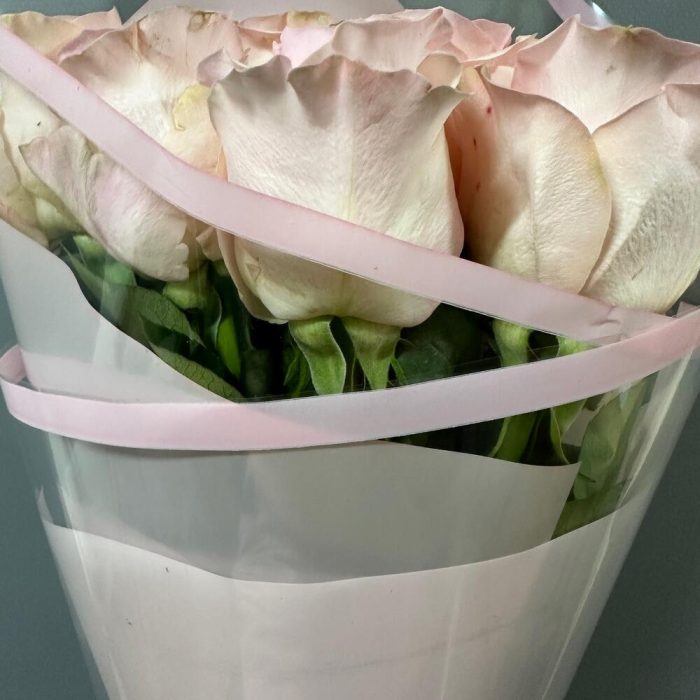 Роза Эквадор 60 см – 7 шт. Упаковка дизайнерская – 1 шт. Лента атласная – 1 шт.