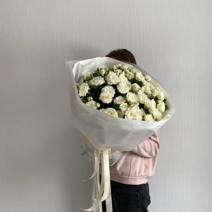 Белоснежный букет из кустовых роз
