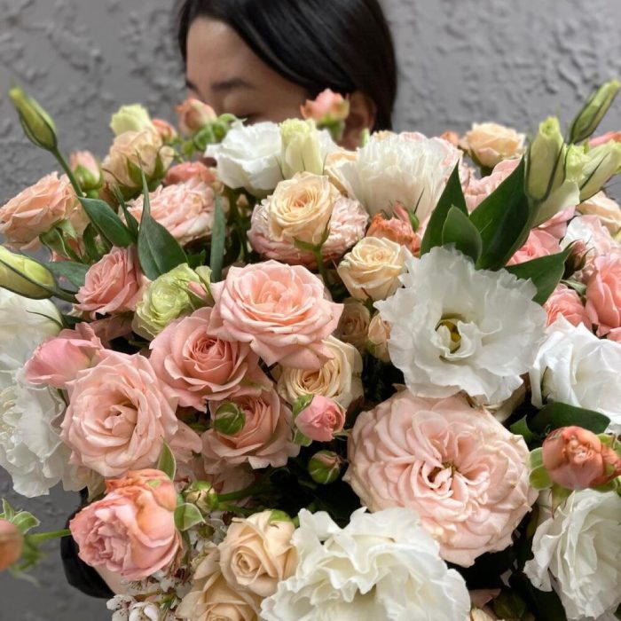 Большая коробка из роз и эустомы