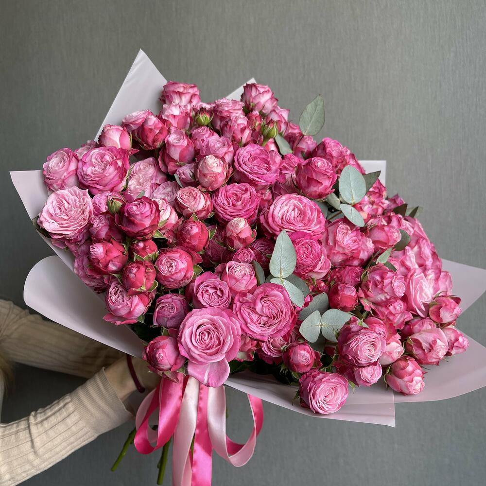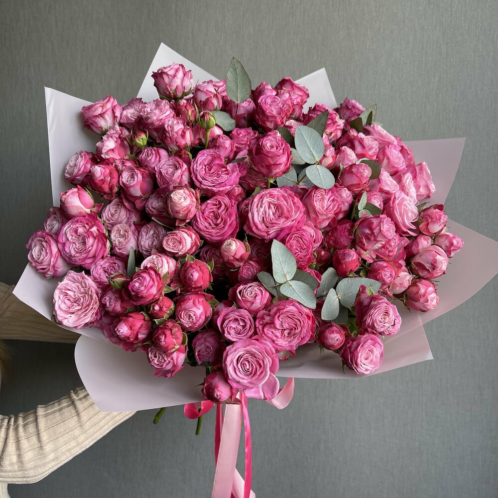 роза кустовая (веток) – 30 шт. Упаковка – 1 шт. Атласная лента – 1 шт.