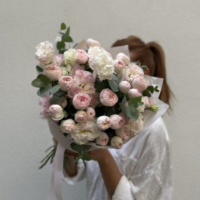 Нежный букет с ароматными пионовидными кустовыми розами.