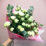 Букет белых кустовых роз с эвкалиптом