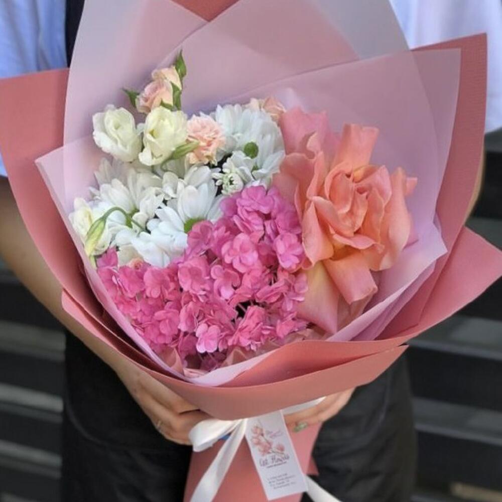 Альстромерии, Кустовые розы, Лизиантусы, Пионовидные розы, Розы, Ромашки