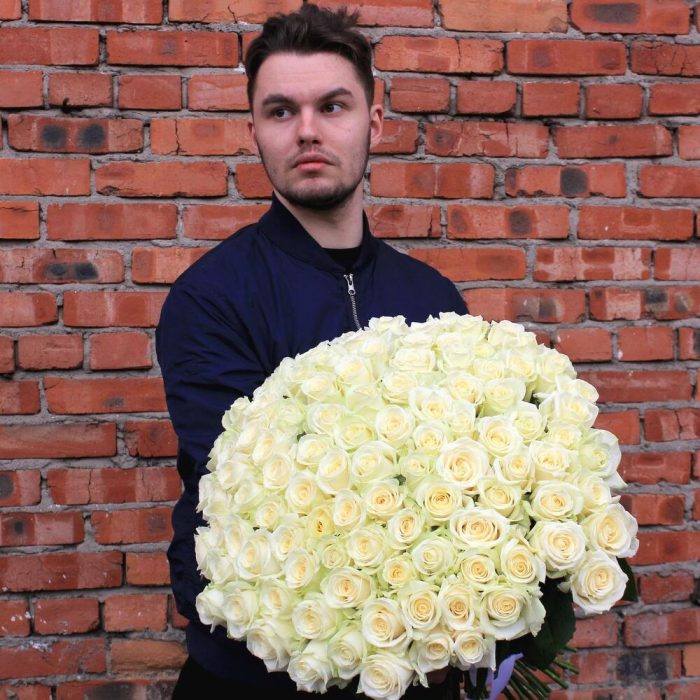 Роза белая – 101 шт.Лента атласная – 1 шт.