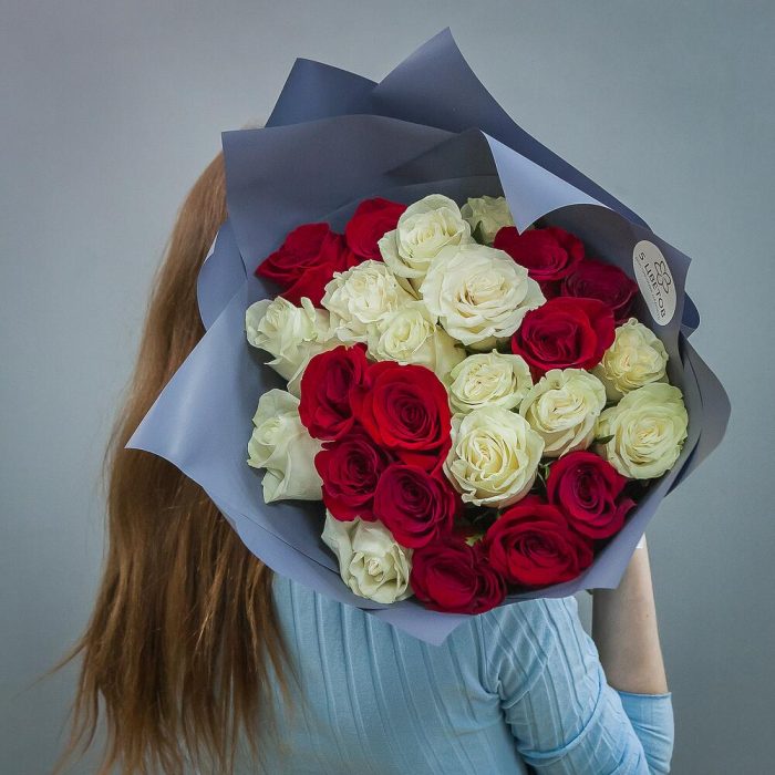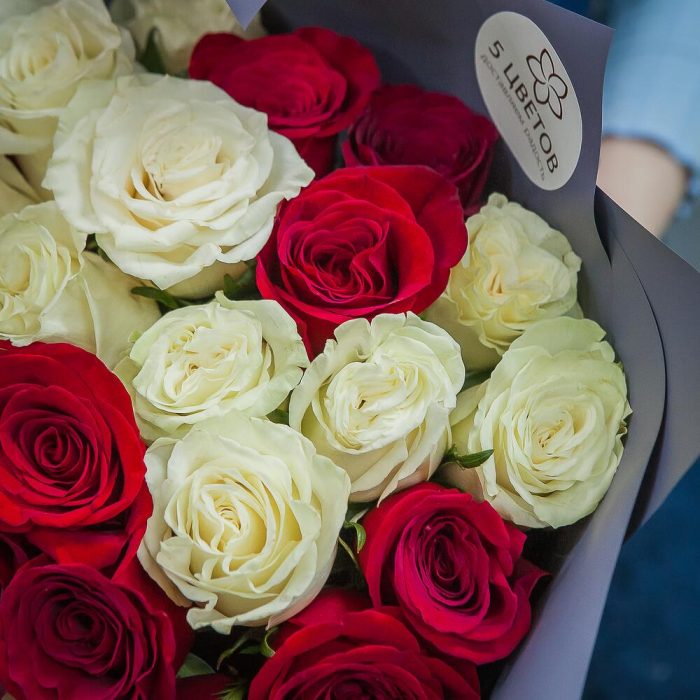 розы – 25 шт.Атласная лента – 1 шт.Матовая пленка – 1 шт.