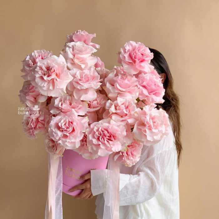 "В твоих глазах": нежная шляпная коробка с французскими розами