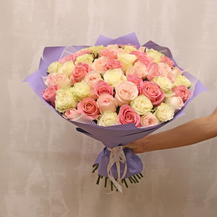 Букет из 51 розы premium нежный микс 40-50 см (Эквадор) в стильной упаковке