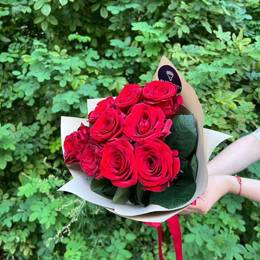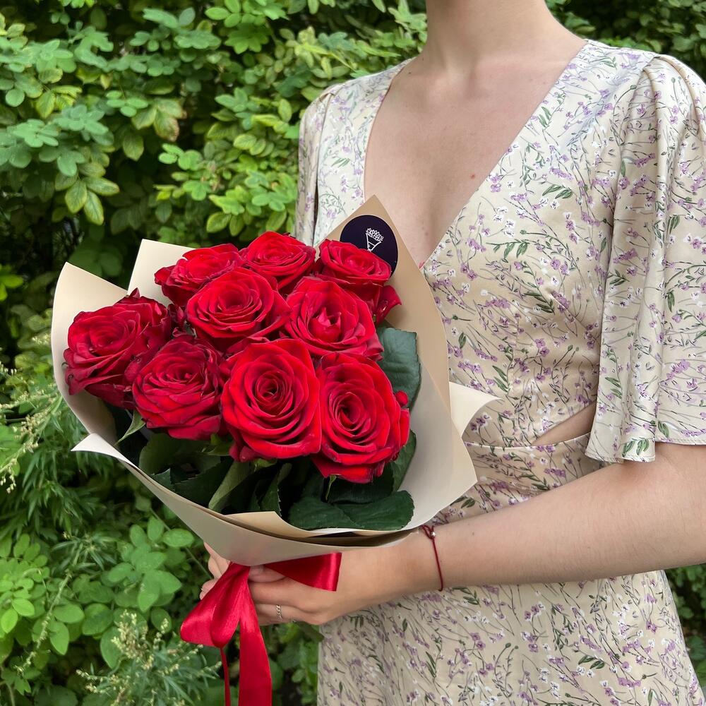 Букет из 9 красных роз в стильной упаковке