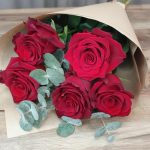 Букет из красных роз с эвкалиптом