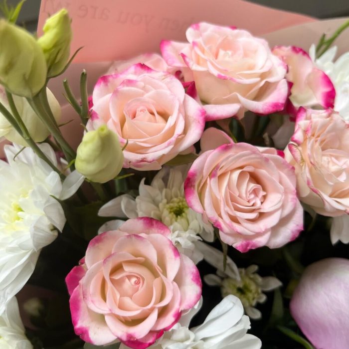 Категории: Кустовые розы, Лизиантусы, Розы, Хризантемы