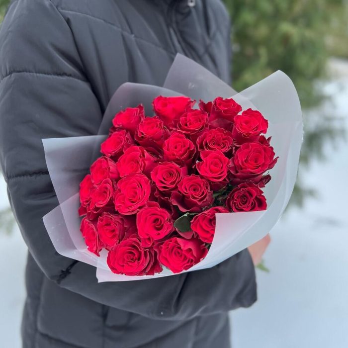 Роза красная 40 см – 25 шт.Пленка матовая – 2 шт.