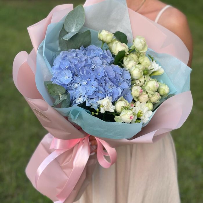 “Эвкалиптическая роскошь” гортензия и пионовидная кустовая роза