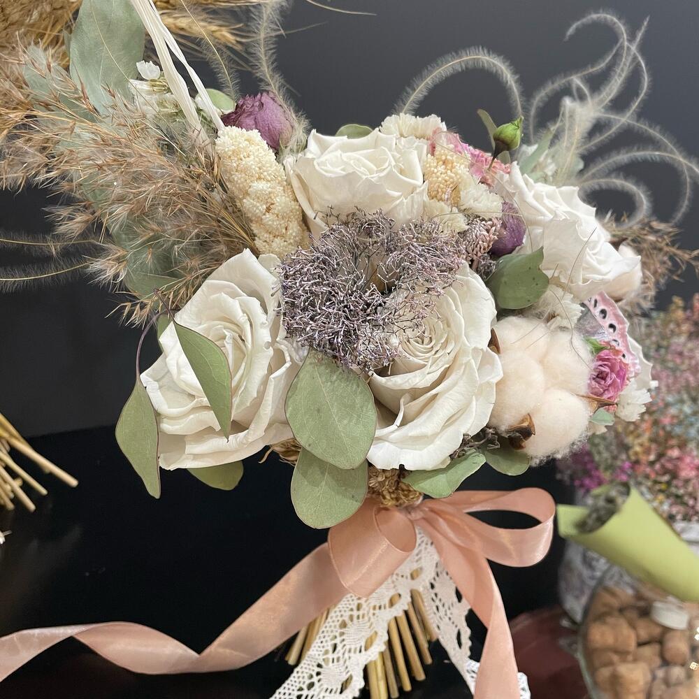 Букет невесты из сухоцветов и стабилизированных роз