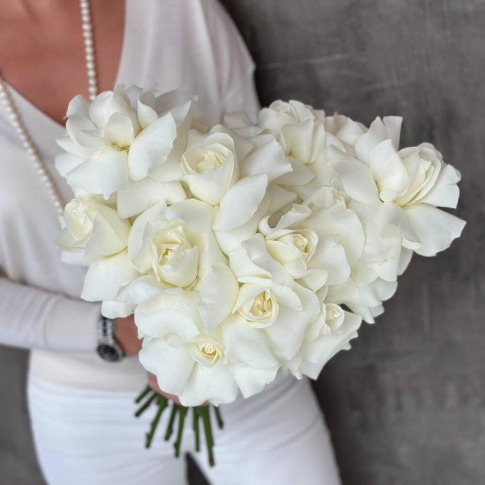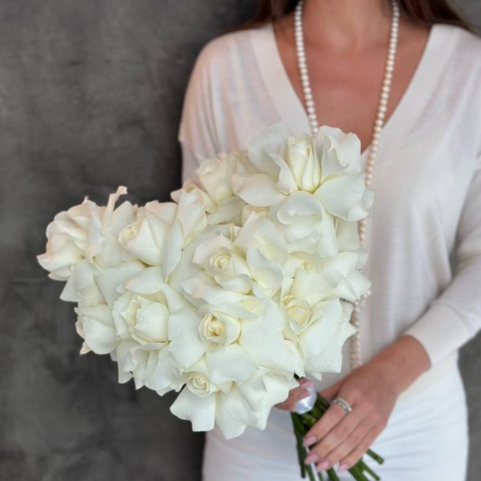 Букет невесты из жемчужных белых французских роз