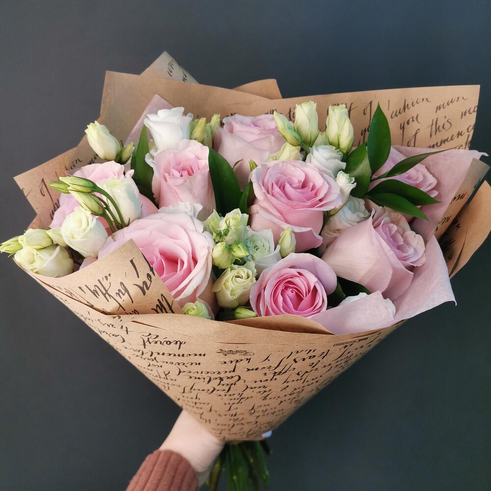 Букет роз и лизиантуса «Онегин»