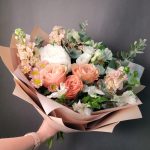 Авторский букет с пионами Коралл Шарм