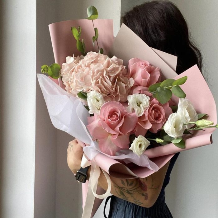 Гвоздики, Кустовые розы, Лизиантусы, Пионовидные розы, Розы