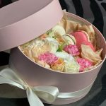 “Атлас☁️” – цветочная композиция с зефиром в деревянном ящике